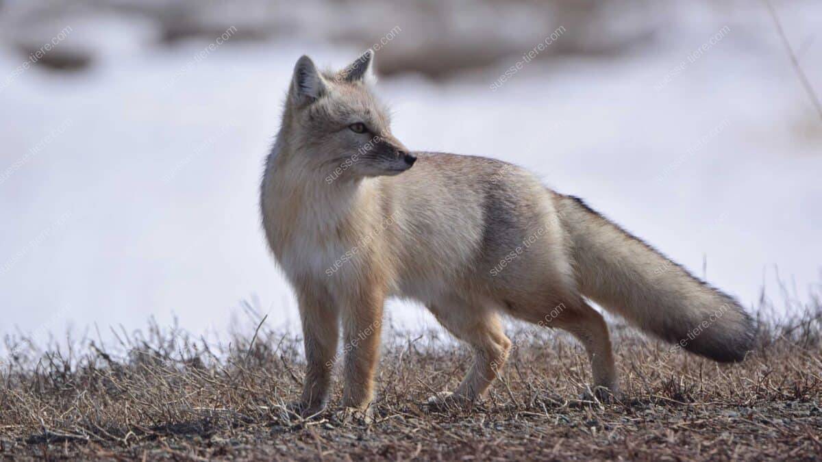 Steppenfüchse beeindrucken mit ihrer kompakten und doch eleganten Erscheinung. Darüber hinaus besitzen sie einen schlanken Körper mit kräftigen, flinken Beinen, der ihnen schnelle Bewegungen ermöglicht. Auffällig ist ihr besonders buschiger Schwanz, der nicht nur zur Kommunikation dient, sondern auch als wärmende Decke in kalten Nächten. Zudem sind ihre großen Ohren ein charakteristisches Merkmal, das ihnen hilft, selbst leise Geräusche von Beutetieren wahrzunehmen.
